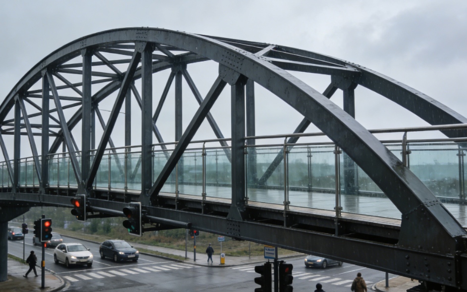 Пешеходный надземный переход из стальной конструкции — это надземный пешеходный мост, спроектированный с использованием стального каркаса и специально предназначенный для безопасного разделения пешеходного и велосипедного движения от автомобильного потока на оживленных перекрестках, вблизи школ или через широкие автомагистрали и железные дороги. Его основная функция — повышение безопасности и мобильности в городе за счет обеспечения выделенного, разделенного уровня земли перехода. При проектировании обычно отдается приоритет доступности (с пандусами или лифтами), свободным пролетам над полосами движения и архитектурной форме, которая гармонично вписывается в городской ландшафт.
