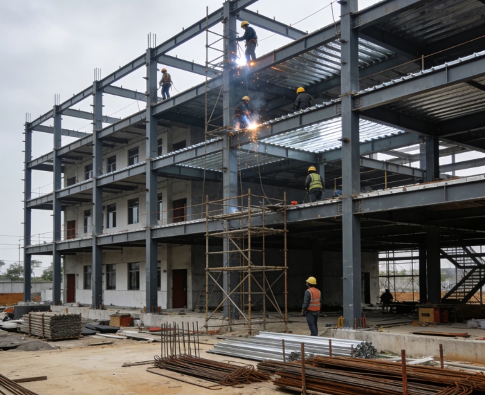 В строительстве общежития со стальной конструкцией используется модульная технология сборного строительства, обладающая пятью основными преимуществами: быстрое строительство (сокращение сроков строительства на 50–70% по сравнению с традиционными зданиями), более выгодная стоимость полного цикла (снижение базовой стоимости на 30%, возможность демонтажа и повторного использования основной конструкции), надежное качество (заводское производство исключает протечки и пустоты, сейсмостойкость достигает 9 баллов), экологичность (сокращение строительных отходов на 80% и переработка стали на 100%) и гибкость пространства (большое пространство без колонн, поддержка интеллектуальной системной интеграции), что отвечает комплексным потребностям предприятий в эффективности, экономичности и экологичности.
